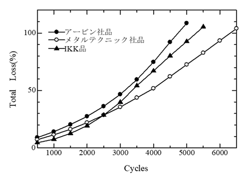 弊社ではアービンテースターにて、ショットの寿命を測定することができ、当社の測定結果では、『FERROSAD』はハイカーボンのスチールショットより約20%以上寿命が長くなります。